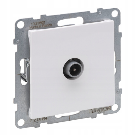 Gniazdo antenowe TV końcowe w kolorze białym z serii Suno, marki Legrand.