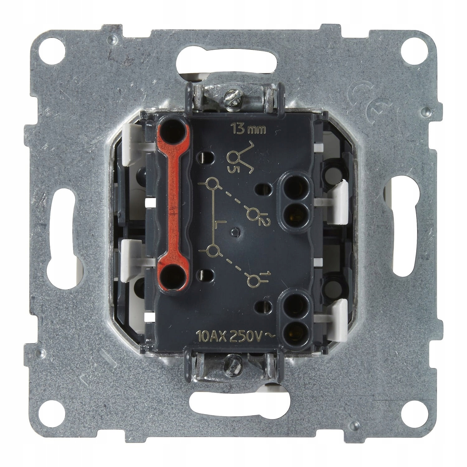 Łącznik świecznikowy - 10 AX - 250 V~ - zaciski automatyczne. Łącznik służy do włączania i wyłączania oświetlenia. Mechanizm wymaga dodania ramki. Kolor Biały.