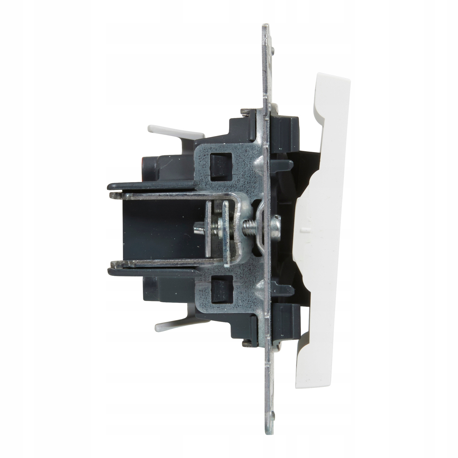UWAGA! Przycisk działa na zasadzie łącznika zwiernego "dzwonkowego" - odbija po naciśnięciu Przycisk pojedynczy - 6 A - 250 V~ - zaciski automatyczne. Przycisk służy do włączania i wyłączania oświetlenia, dzwonka i timera. Mechanizm wymaga dodania ramki. Kolor Biały.