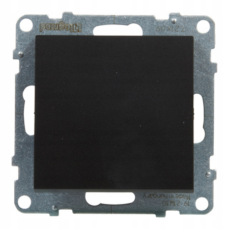UWAGA! Przycisk działa na zasadzie łącznika zwiernego "dzwonkowego" - odbija po naciśnięciu Przycisk pojedynczy - 6 A - 250 V~ - zaciski automatyczne. Przycisk służy do włączania i wyłączania oświetlenia, dzwonka i timera. Mechanizm wymaga dodania ramki. Kolor Czarny .