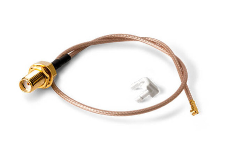 Przejściówka IPX-SMA służy do podłączenia zewnętrznej anteny do modułu komunikacyjnego. Posiada żeńskie złącza IPX i SMA. Dzięki temu, że przejściówka ma długość 25 cm, można wyprowadzić złącze antenowe na zewnątrz obudowy lub wygodnie umieścić antenę w jej wnętrzu.