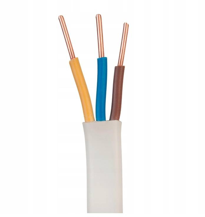 Przewody o żyłach miedzianych, jednodrutowych o izolacji i powłoce z polwinitu zwykłego, płaskie, ogólnego przeznaczenia do układania na stałe.