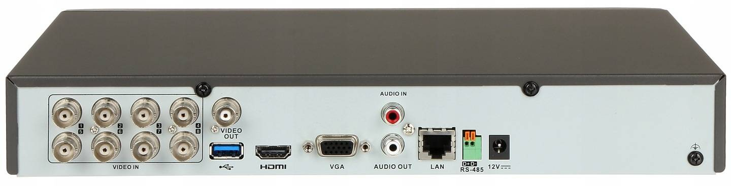 Rejestrator Hikvision iDS-7208HQHI-M1/S jest 8-kanałowym rejestratorem wideo pracującym w standardzie 4w1, tzn. obsługuje formaty obrazu: HD-TVI, HD-CVI i AHD i starszy CVBS (zamiennie za kamery analogowe, można też podłaczać kamery IP). Posiada 8 wejść wideo BNC, do któych można podłączyć kamery analogowe powyższych standardów. Posiada miejsce na 1 dysk twardy o maksymalnej pojemności 10 TB.