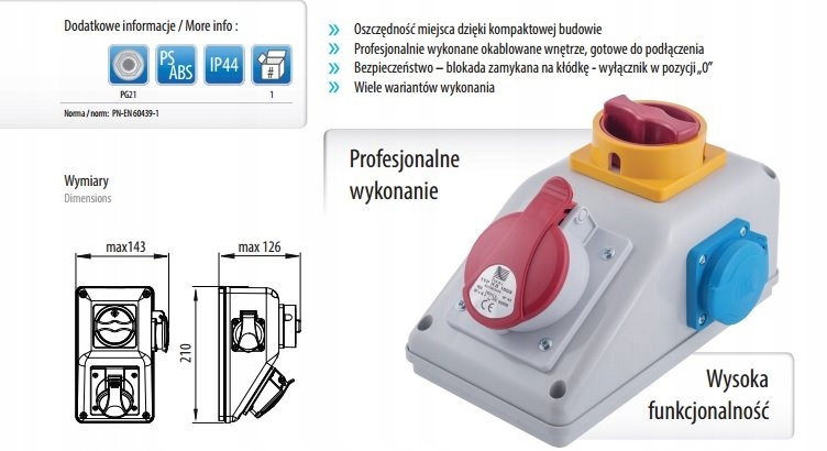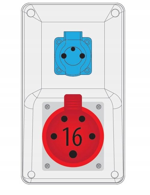 - Gniazdo główne: 16A 400V 3P+N+Z