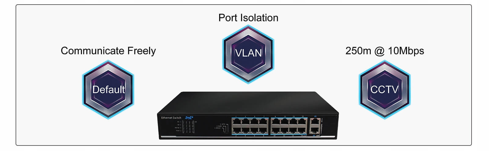 • CCTV: zasięg transmisji zwiększa się do 250 m, ale prędkość jest ograniczona do 10Mbps. Konstrukcja o wysokiej wydajności