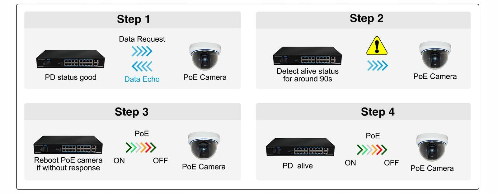 • Obsługa watchdoga PoE w trybie VLAN i CCTV