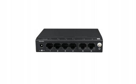 - Główne porty: 4x porty downlink z obsługą PoE, 2x porty uplink;