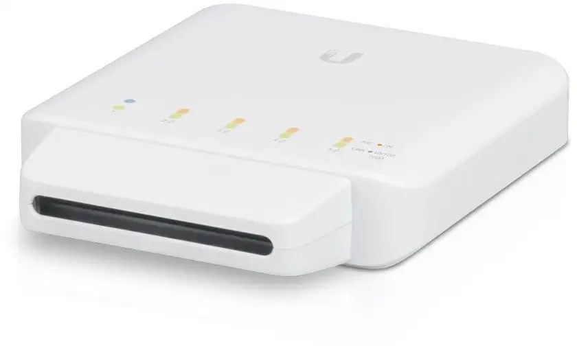UniFi Switch Flex to zarządzany przełącznik warstwy 2 Gigabit z obsługą automatycznego wykrywania PoE 802.3af.