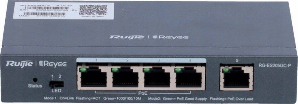 Switch zarządzalny Reyee RG-ES205GC-P, 5-portowy, Desktop, PoE