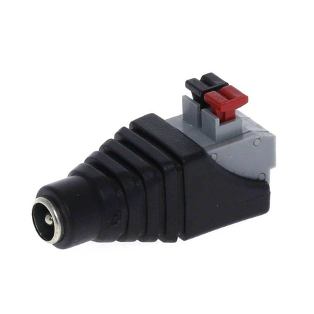 Szybkozłącze na standardowe gniazdo do zasilania kamery. Aby zamontować G-55H*P10 wystarczy jedynie odizolować przewody i wcisnąć w zaciski spręzynowe.