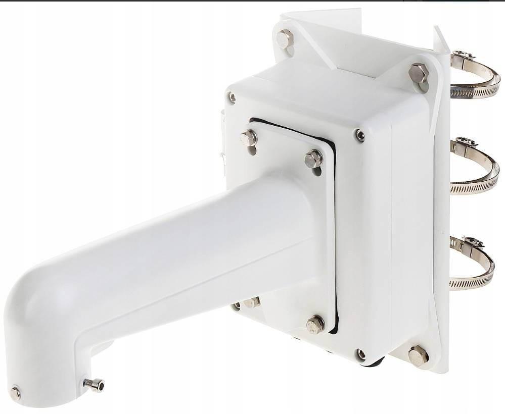 Uchwyt DS-1602ZJ-box-pole to wysokiej jakości akcesorium montażowe, pomocne w trakcie realizacji stanowisk monitoringu wizyjnego bazujących na nowoczesnych kamerach obrotowych PTZ Hikvision. Uchwyt posiada aluminiową konstrukcję zapewniającą odpowiedni poziom niewrażliwości na uszkodzenia mechaniczne, oddziaływanie skrajnych wartości temperatur oraz różnorodnych zjawisk atmosferycznych. Uchwyt ścienny Hikvision prznaczony do zewnętyrznej/wewnętrznej instalacji kamer obrotowych o średnicach od 4 do 8 cali z rewizją w ramieniu oraz hermetyczną puszką przyłączeniową.