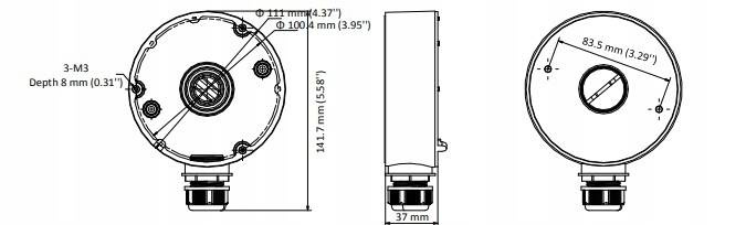Metalowa puszka przyłączeniowa umożliwiająca maskowanie przewodów w przypadku montażu kamer serii: DS-2CD21xx-I , DS-2CC51D3S-VPIR , DS-2CD11xx-I na płaszczyźnie sufitów betonowych.