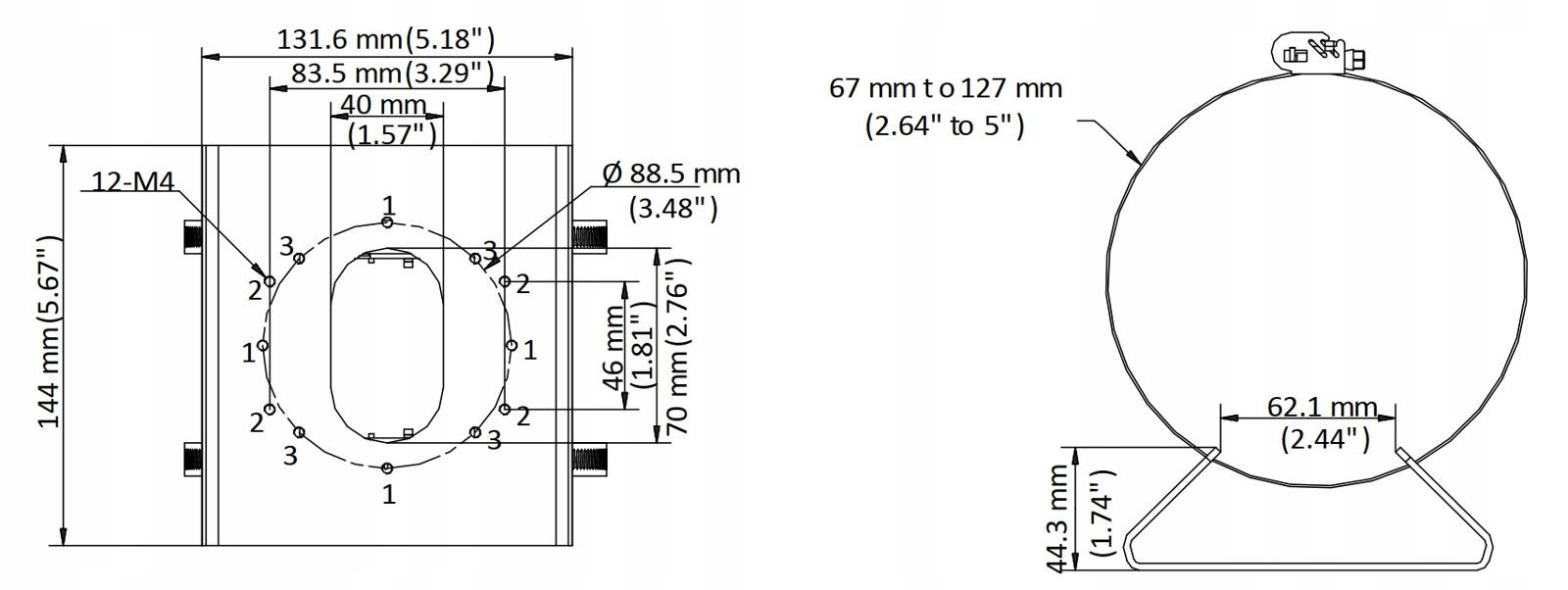 - Zakres średnicy słupa: Ø 67 ... Ø 127 mm