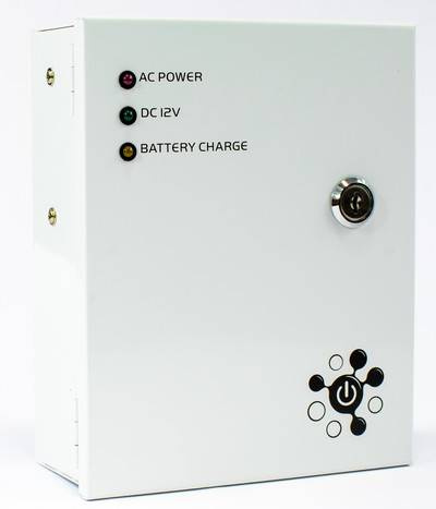 Obudowa zasilacza jest metalowa z wbudowanym zamkiem (w zestawie są dwa kluczyki) . Na tylnej ścianie są otwory mocujące oraz jeden większy otwór kablowy. Na bocznej ściance są trzy otwory kablowe zakryte gumowymi dławnicami.