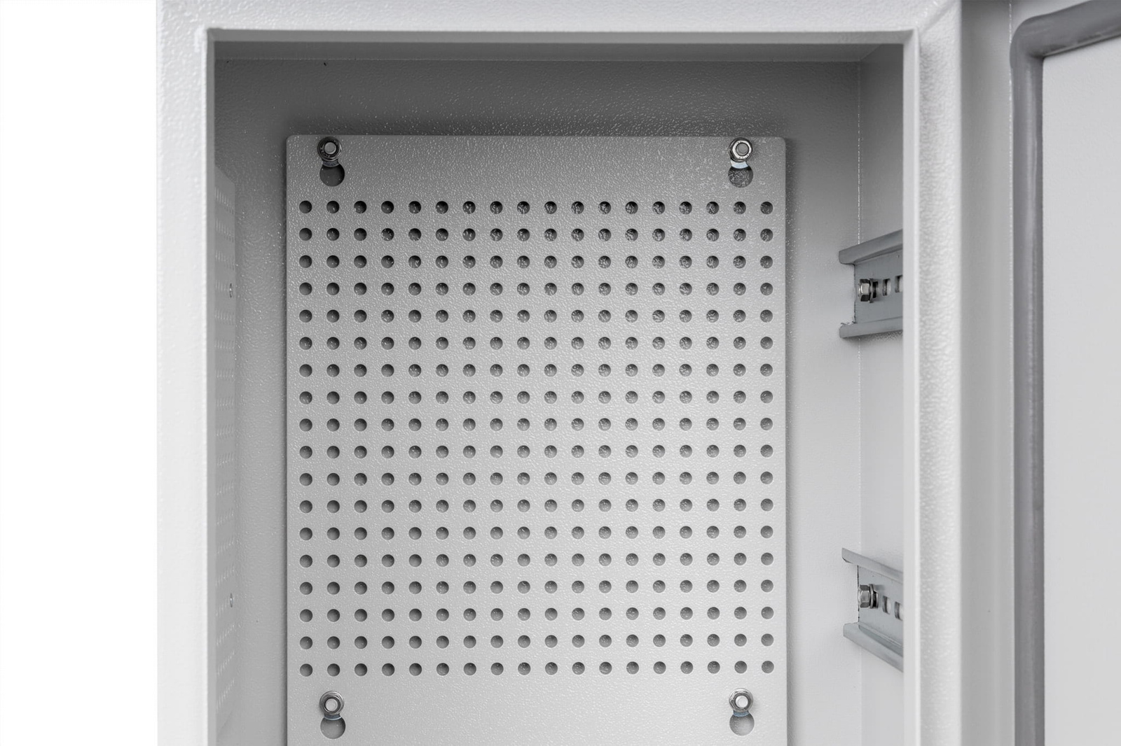 W obudowie można wygodnie umieścić m.in. switch przemysłowy, zasilacz, przetwornicę,  wyłącznik główny oraz mini przełącznicę lub puszkę światłowodową. Wszystkie elementy mogą być montowane na szynach DIN lub na aluminiowej płycie montażowej.