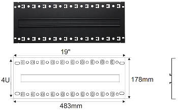 - Blacha montażowa A19-TS-35/BL-4U przeznaczona jest do montażu urządzeń na szynę DIN w tylnej części szafy Rack 19” Połączenie szyny wraz z blachą gwarantuje sztywne zamontowanie urządzenia na szynie włącznie z możliwością przymocowania kabli zasilających/