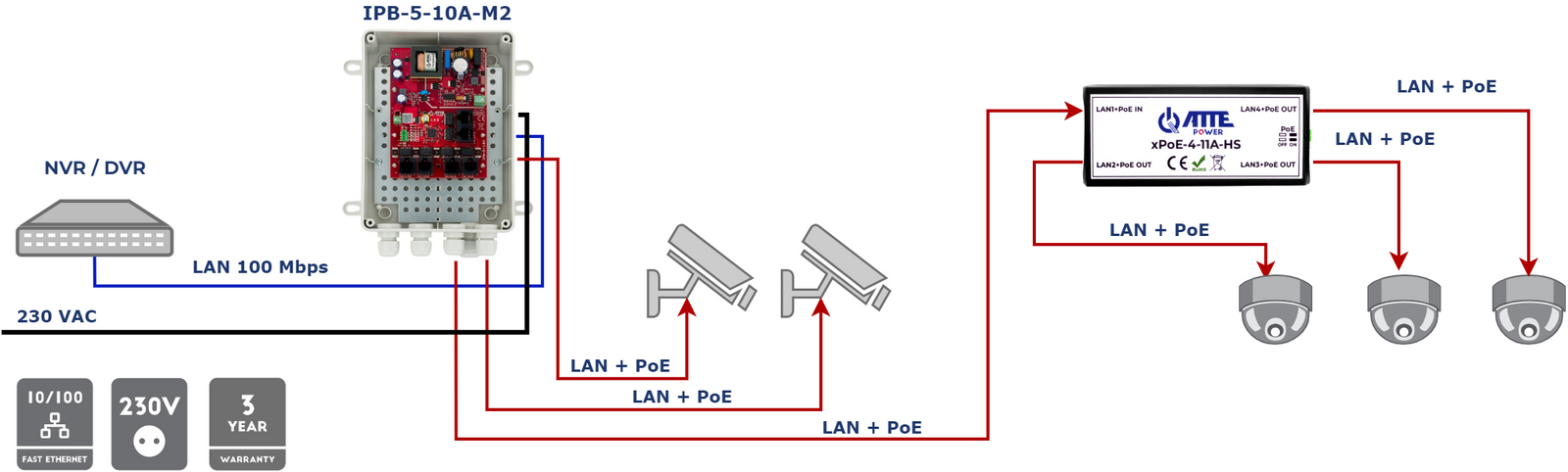 Przykładowa konfiguracja IPB-5-10A-M2 w połączeniu z xPoE-3-11A