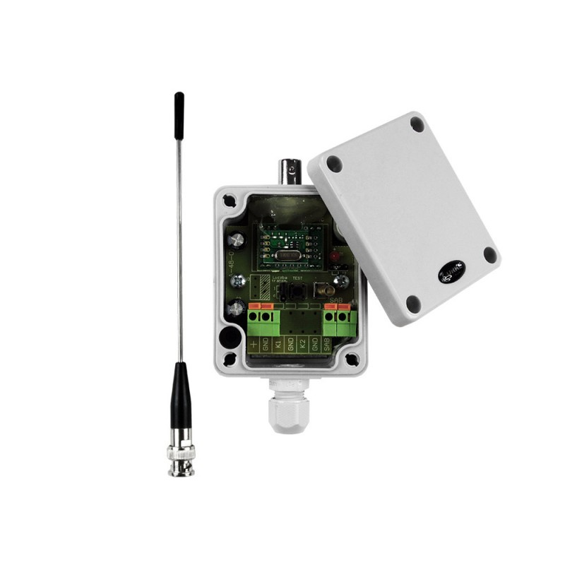 - Nadajnik 1-kanałowy, zasięgi we współpracy z odbiornikami z modułem H2 (np. OPC-K02, IDO-1000) - ok. 1 km, zasilanie: 10-15 VDC, IP65