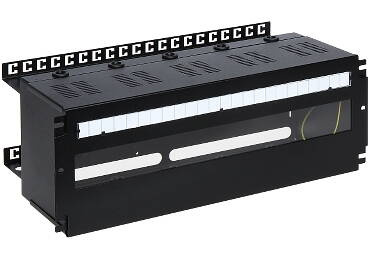 Obudowa z szyną DIN do szaf RACK przeznaczona jest do zamontowania urządzeń znajdujących się w obudowach DIN, do szaf RACK-owych 19"; Do obudowy można wstawić maksymalnie 24 bezpieczniki o szerokości 1 S.; Szerokość: 19 " ; Wysokość: 4 U ;