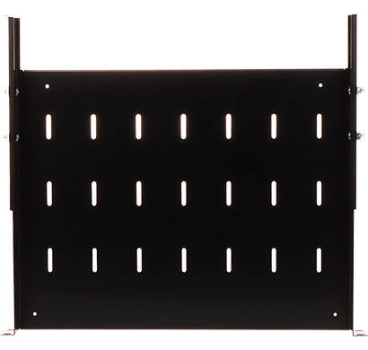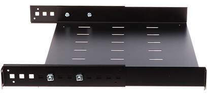 - Regulowana półka do szafy RACK 19", przeznaczona do montażu urządzeń nie posiadających obudowy przystosowanej do montażu w szafach RACK
