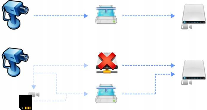Innowacyjnym rozwiązaniem jest opcja nagrywania w pętli. Kamera po utracie połączanie (kamera - rejestrator) rozpocznie rejestrację obrazu na karcie microSD do momentu naprawienia sieci, następnie utracony materiał w pamięci wewnętrznej rejestratora zostanie uzupełniony materiałem zapisanym na karci microSD.