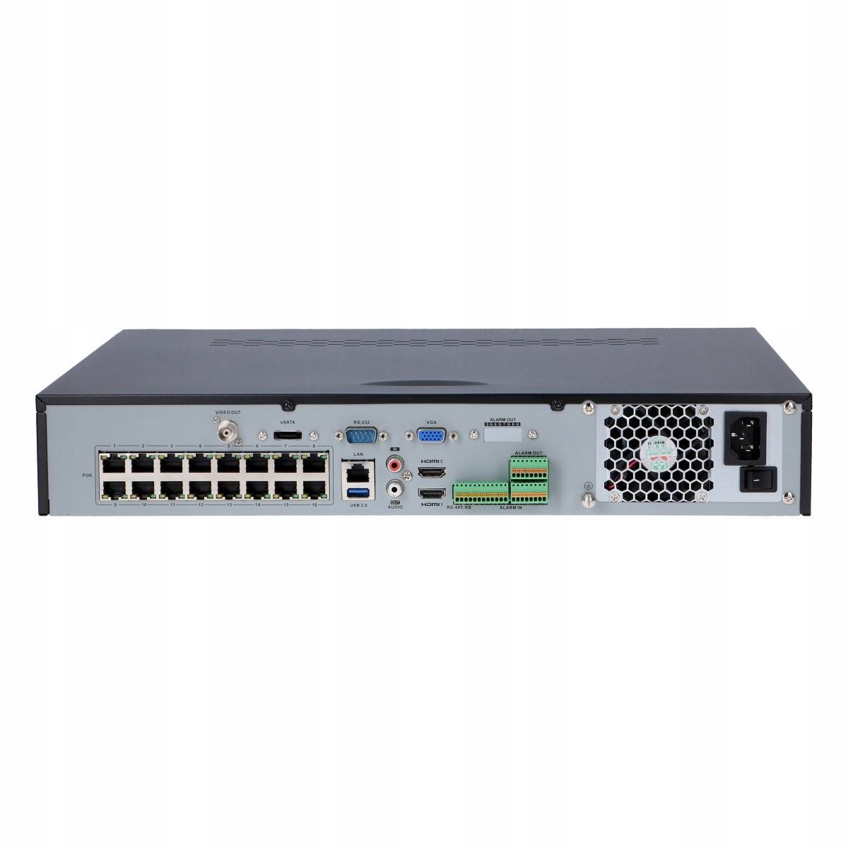 W rejestratorze zastosowano 16-portowy switch z obsługą technologii PoE. Technologia Power over Ethernet umożliwia za pomocą jednego przewodu dostarczenie do urządzenia zasilania oraz przesył danych z monitoringu. Dzięki temu rozwiązaniu synchronizacja systemu monitoringu jest jeszcze łatwiejsza.