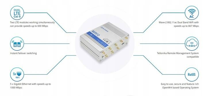 Teltonika RUTX12, Dual LTE kat. 6 - przemysłowy router nowej generacji