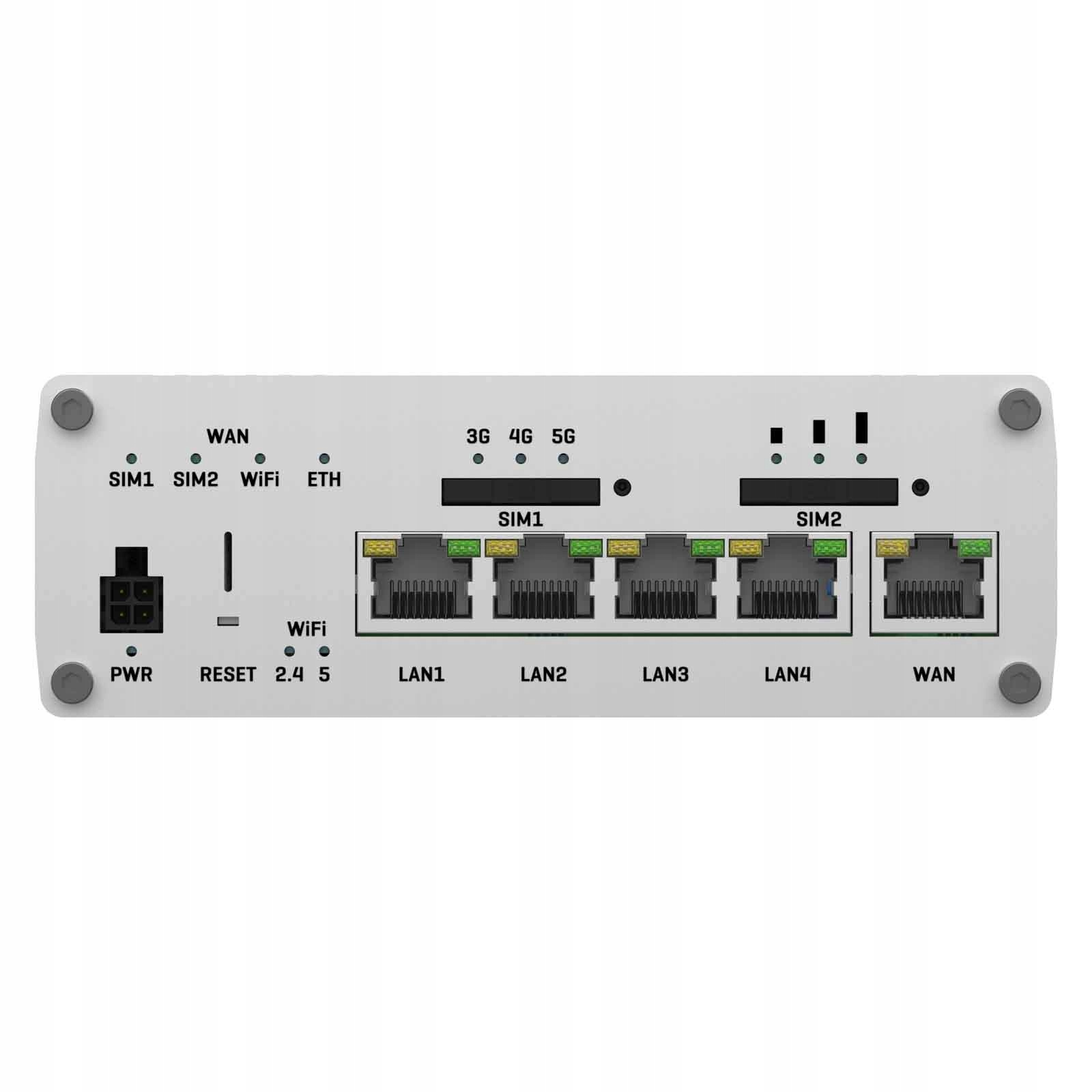 Teltonika RUTX50. Podstawowy standard Wi-Fi: Wi-Fi 5 (802.11ac), WLAN wskaźnik przesyłu danych (max): 867 Mbit/s, Standardy Wi- Fi: 802.11b, 802.11g, Wi-Fi 4 (802.11n), Wi-Fi 5 (802.11ac). Typ interfejsu Ethernet LAN: Gigabit Ethernet, Prędkość transferu danych przez Ethernet LAN: 10,100,1000 Mbit/s, Technologia okablowania: 10/100/1000Base-T(X). Generacja sieci mobilnej: 5G, Standardy 4G: LTE, Typ karty SIM: MiniSIM. Szyfrowanie / bezpieczeństwo: WPA3-EAP, WPA2-Enterprise-PEAP, AES-CCMP, TKIP, WEP, WPA2-PSK, WPA3-SAE. Protokół wybierania drogi: NHRP, BGP, EIGRP, OSPFv2, RIP-1, RIP-2