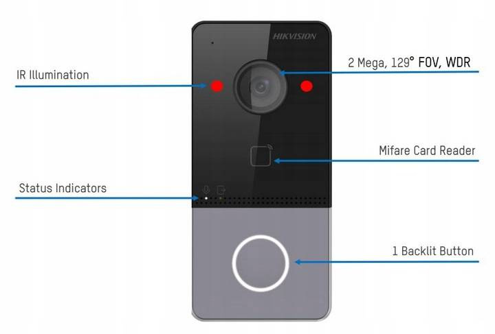 Hikvision DS-KV6113-WPE1 jest zintegrowaną stacją bramową, dedykowaną do systemów wideodomofonowego IP drugiej generacji, od firmy Hikvision. Urządzenie zostało wyposażone w wysokiej jakości kamerę szerokokątną o rozdzielczości 2Mpx @1920x1080, dwukierunkowy system komunikacji głosowej, oraz przycisk wywołania. Dodatkowo model ten został wyposażony w czytnik tagów zbliżeniowych w standardzie Mifare, co umożliwia sterowanie otwarciem za pomocą transponderów zbliżeniowych, takich jak karty czy breloki.