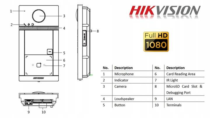 Urządzenie zostało wyposażone w wysokiej jakości kamerę szerokokątną o rozdzielczości 2Mpx @1920x1080, dwukierunkowy system komunikacji głosowej, oraz przycisk wywołania i dwa wyjścia przekaźnikowe.