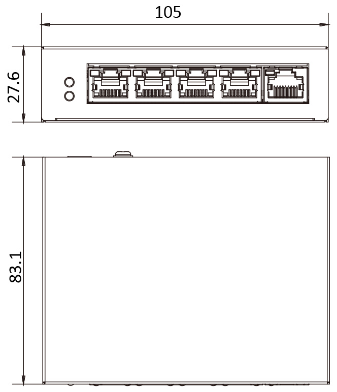 10 / 100 / 1000 Mb/s - 1 Port Uplink - Maksymalna moc wyjściowa: 30 W / port PoE - Porty 1 ... 4