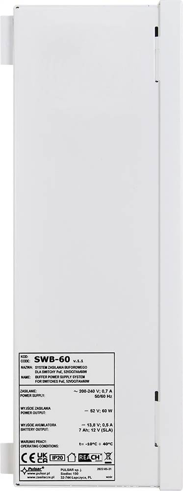 System zasilania switchy PoE PULSAR SWB-60