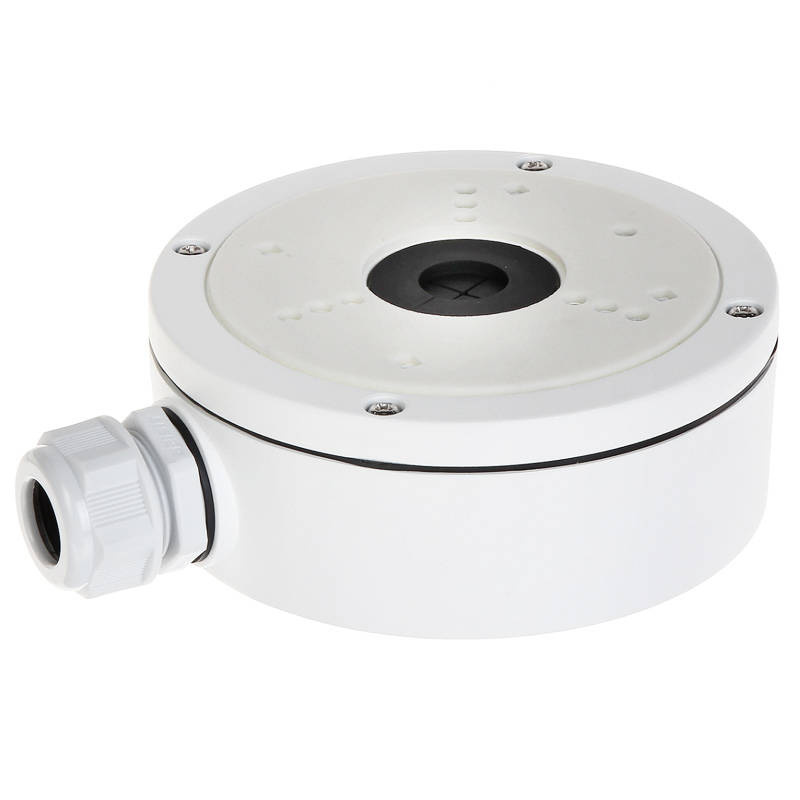 Uchwyt podstawka puszka adapter DS-1280ZJ-S HIKVISION. Nadaje się do kamer kopułkowych. Ułatwia montaż - przede wszystkim ukrycie kabli, przyłączy prądowych, transformatorów wideo, modułów PoE. Wykonana z metalu, hermetyczna z przepustem kablowym. Można wejść kablem z boku lub od podstawy. Pasuje do kamer ip jak i TurboHD. Dławik w komplecie.