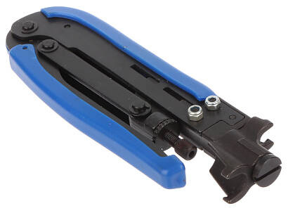Zaciskarka do złącz kompresyjnych uniwersalnych na kabel koncentryczny RG6, RG59, RG11. Narzędzie przeznaczone do zaciskania złącz typu F, BNC, RCA, IEC.