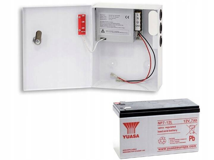 ZASILACZ SKRZYNKOWY BUFOROWY IMPULSOWY 3A 12V + akumulator YUASA 7Ah 12V