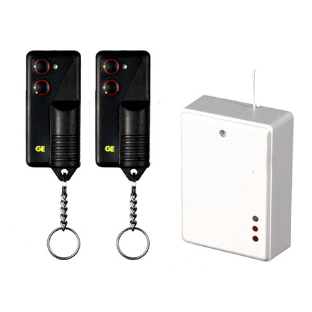 W zestawie: RSU-K01 (odbiornik) i 2x PUK-102 (piloty), 2-kanałowy, zasięg: 100 metrów, zasilanie: 10-15V DC