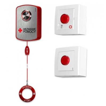 Zestaw zawiera: SPX-CS1, BSX-400, SPX-PK1C, alarm z klawisza, pociągnięcie linki, kasowanie na przycisku, łączność dwukierunkowa
