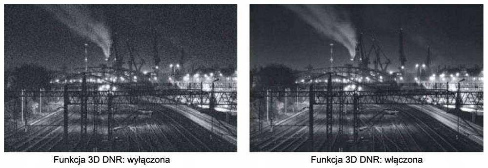 - DNR - (Digital Noise Reduction) - Cyfrowa redukcja szumów to system aktywnej ochrony obrazu przed ewentualnymi zakłóceniami mogącymi pojawić się w trakcie rejestrowania nagrań. Funkcja DNR nieustannie analizuje przechwytywane nagrania wykorzystując metodę porównawczą następujących po sobie klatek obrazu, jak i poszczególnych pikseli. Dzięki temu rozwiązaniu możliwe jest zapisywanie czystych i przejrzystych nagrań zarówno w dzień, jak i w nocy.