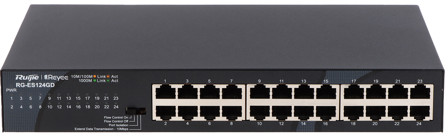 Switch RG-ES12GD firmy Reyee to niezawodny , 24-portowy Gigabit Ethernet switch idealny dla małych i średnich firm, domowych biur oraz instytucji edukacyjnych. Oferuje przepustowość 48 GBbps, łatwość instalacji typu Plug and Play oraz solidną metalową obudowę. Zapewnia podstawowe funkcje Quality of Service (QoS) i jest doskonałym wyborem do rozbudowy sieci LAN oraz monitoringu.