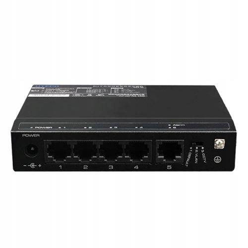 Wysokiej jakości niezarządzalny przełącznik gigabitowy został zaprojektowany specjalnie do monitoringu wideo HD i inżynierii sieciowej, zapewniając 4 *porty 10/100/1000Mbps RJ45 i 1 *10/100/1000Mbps Port Uplink RJ45. Przełącznik obsługuje trzy tryby pracy (Default, VLAN, CCTV). W trybie domyślnym, przełącznik obsługuje wykrywanie pętli przełączania i przypomina o konieczności sprawdzenia portu, w którym wystąpiła pętla, w czasie rzeczywistym poprzez alarmujący wskaźnik LED.