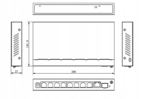 - Interfejs: 8x portów 10/100 / 1000Base-T Ethernet (PoE), 1x 10/100 / 1000BASE-T portów Ethernet i 1x gigabitowe porty SFP;